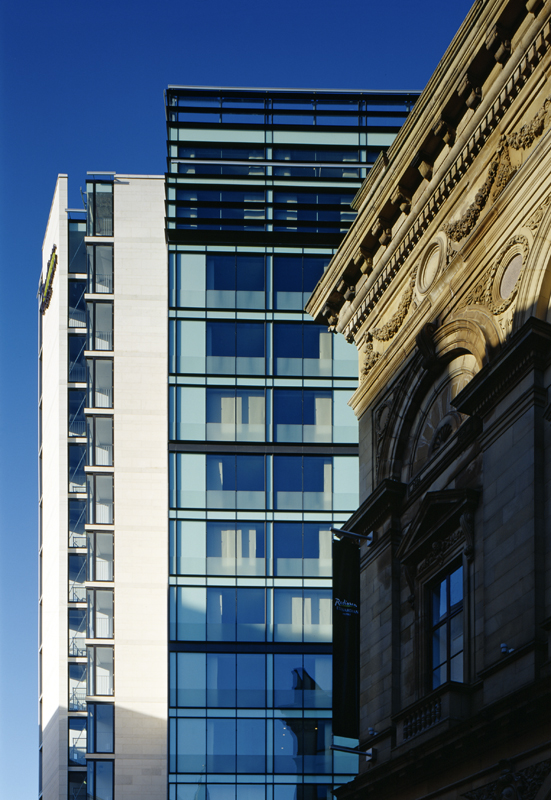 Complete conversion of the Free trade hall to 5-star hotel with new bedroom block. Full leisure and conference facilities. Full M&E services including, VAV, VRV, BMS and feature lighting with automatic scene setting.